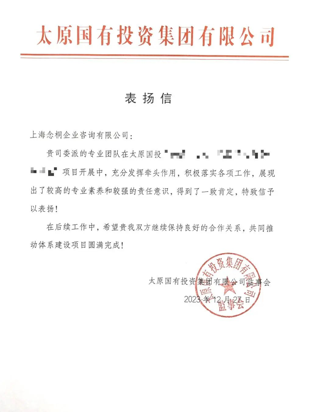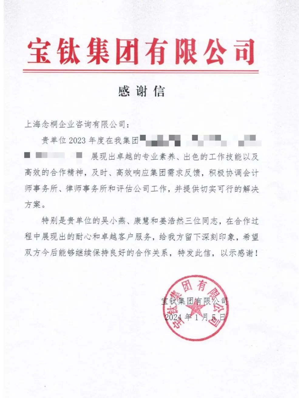連日來,念桐咨詢業(yè)務團隊在工作方面的突出表現(xiàn),收到了各位客戶的大力認可,一封封感謝信、表揚信紛至沓來。字里行間是對我們的充分信賴與認可,代表著榮譽,更意味著責任,