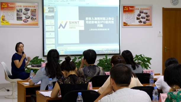 培訓(xùn)中,朱艷總裁根據(jù)財政部發(fā)布的《企業(yè)會計準則第14號——收入》部分,以專業(yè)的財務(wù)知識、豐富的從業(yè)經(jīng)驗、敏銳的視角為參會者系統(tǒng)介紹了新舊準則的變化對比、新準則下收入確認和計量的“五步法”模型、新準則實施后對若干行業(yè)會計處理的影響三方面內(nèi)容,同時從盈利問題、財務(wù)規(guī)范要求和非財務(wù)共性問題三方面分析了IPO存在的普遍性問題。此次培訓(xùn)解讀具體,針對性強,有助于讓企業(yè)準確理解新會計收入準則,做好新舊準則變化下的企業(yè)財務(wù)處理和資本市場的財務(wù)對接工作。