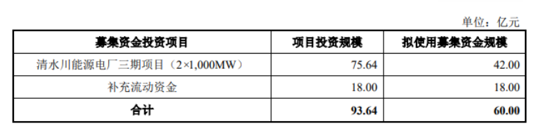 募資用途:此次IPO擬募集60億元,用于清水川能源電廠三期項目(2×1,000MW)、補充流動資金。