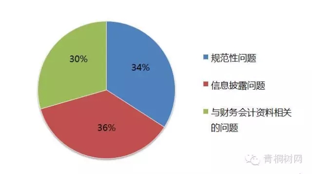 一般來說,申請(qǐng)創(chuàng)業(yè)板上市企業(yè)的反饋問題分為三類(1)規(guī)范性問題;(2)信息披露問題;(3)與財(cái)務(wù)會(huì)計(jì)資料相關(guān)的問題等等。青桐樹網(wǎng)統(tǒng)計(jì)了201570家申請(qǐng)創(chuàng)業(yè)板上市企業(yè)的170余個(gè)典型問題,三類問題的關(guān)注比重基本持平,列示如下: