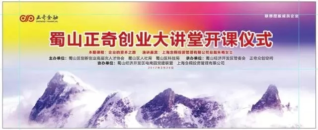 2017年蜀山正奇創(chuàng)業(yè)大講堂全年計劃舉辦18場活動,朱艷女士作為正奇創(chuàng)業(yè)大講堂的第1期演講嘉賓,演講主題是《企業(yè)的資本之路》,內容就企業(yè)上市發(fā)展的道路和一些問題做了深刻講述,耐人回味。這場演講流程順暢、意義重大、反響熱烈。