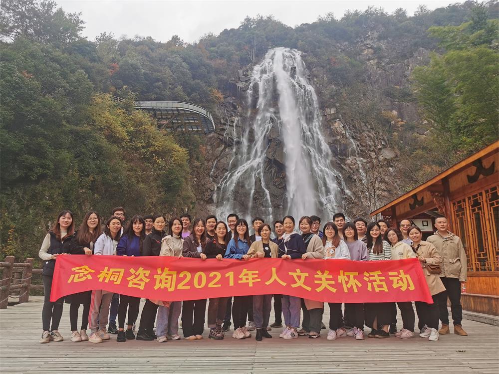 2021年11月5日至6日,上海念桐企業(yè)咨詢(xún)有限公司成功開(kāi)展2021年度人文關(guān)懷活動(dòng),咨詢(xún)一部、二部的總監(jiān)分別帶領(lǐng)團(tuán)隊(duì)前往岳西彩虹瀑布和霍山陡沙河。